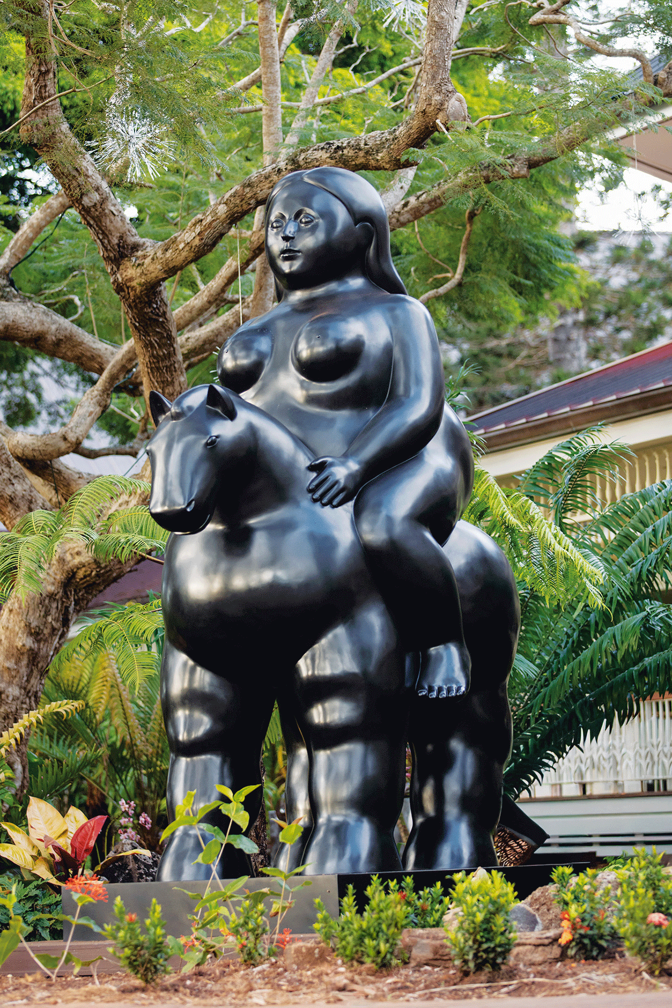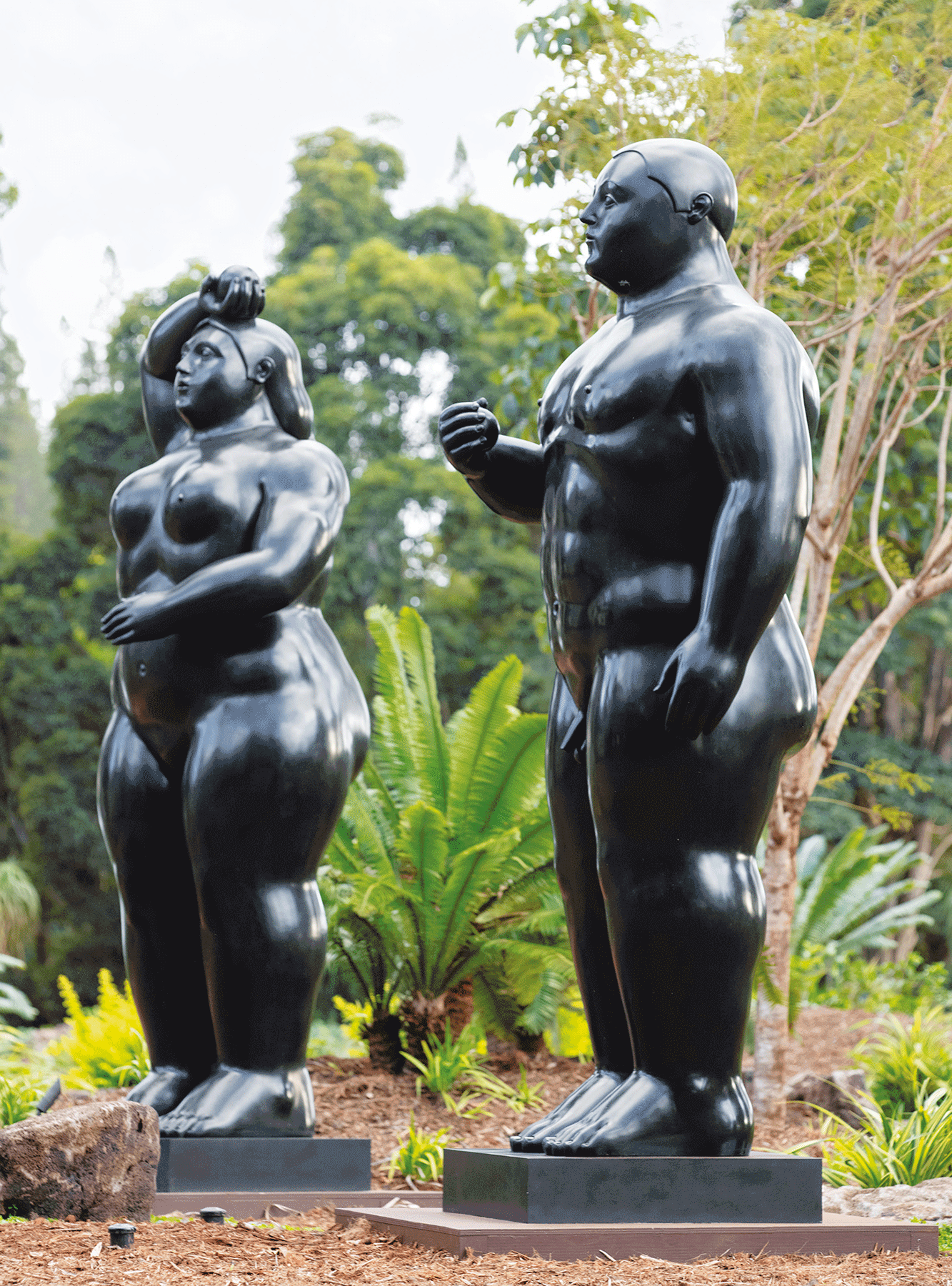(1932–)Fernando Botero’s signature style of creating sculptures with exaggerated and in ated features, suggesting political criticism and satire, coined a new term in the art world: “Boterismo.” The Columbian artist, well known for representing women, men, daily life, and historical events with wit and irony, began his career as a painter experimenting with proportion and size with his paintings of round, corpulent humans, before switching to sculpture in the 1970s.