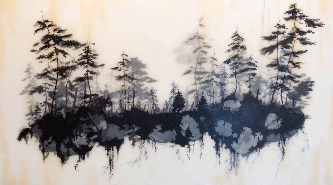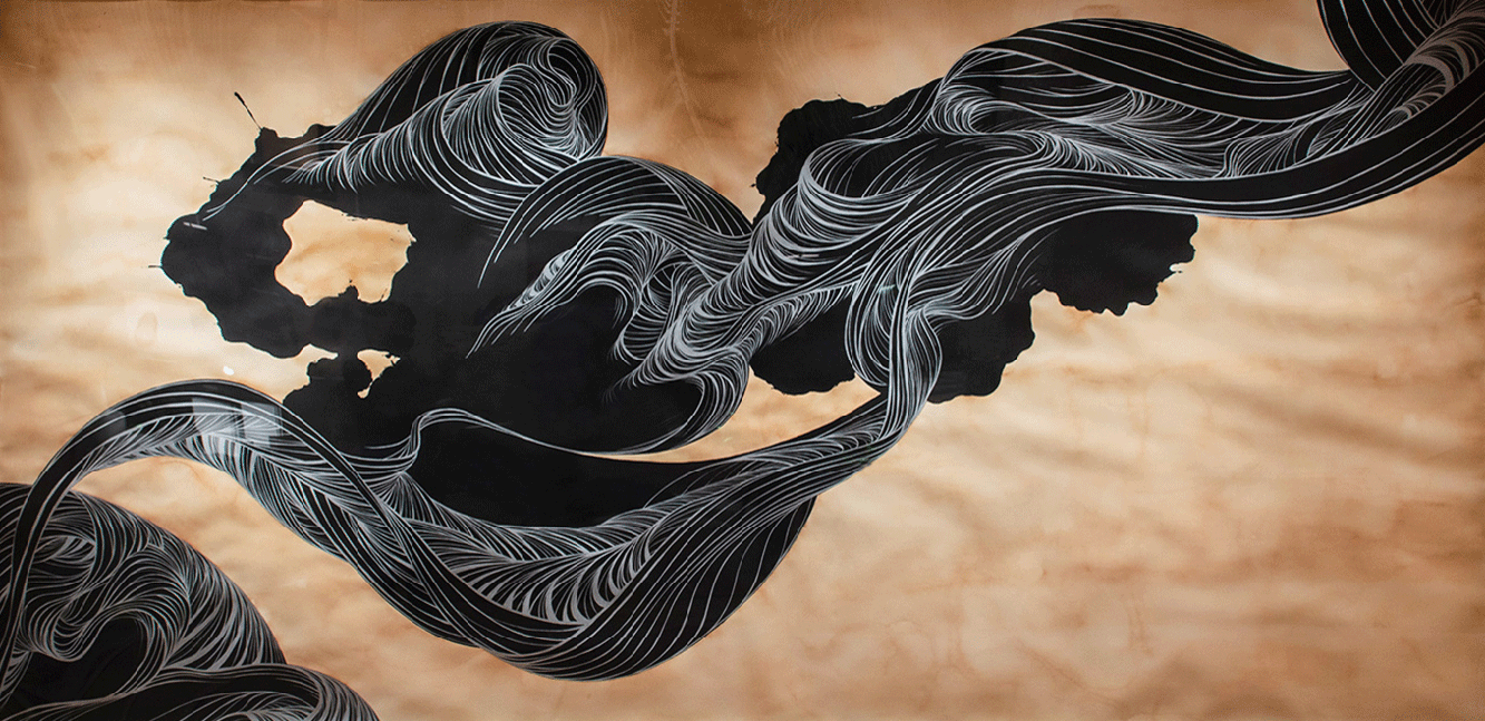 Lana'i Flow | 2018 | Sumo ink on tobacco-stained paper